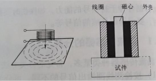 c)傳感器線圈和被檢測試樣工件位置各自獨立,市場中應用比較多的如筆試探頭。如下圖:
