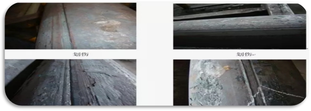 二、劃傷 (劃痕) 該類問題的特征:沿軋制方向上縱向的細(xì)長凹下缺陷,其形狀和深淺、寬窄隨產(chǎn)生的原因不同而異。 蘇州阜匯認(rèn)為其產(chǎn)生原因: 它是由于鋼材的氧化鐵皮、金屬顆粒或其它異物積聚在導(dǎo)衛(wèi)裝置內(nèi),與高溫高速的軋件接觸而刮傷,或由于導(dǎo)板安裝不當(dāng)及其異常損耗,保養(yǎng)不好等。