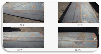 蘇州阜匯認(rèn)為其產(chǎn)生原因:鋼材在鍛、軋過程中產(chǎn)生的飛邊、毛刺、皺折和尖銳棱角等,在繼續(xù)軋制時(shí)壓入金屬內(nèi)部,則形成折疊。初軋時(shí)形成的耳子在軋制過程中被壓倒也會(huì)形成折疊缺陷。清理原料表面缺陷時(shí),若深寬比不合適也會(huì)出現(xiàn)折疊缺陷 四、耳子 該類問題的特征:在鋼材表面上,與孔型開口處相對(duì)應(yīng)的地方,出現(xiàn)順軋制方向的凸起稱為耳子,有的是單邊的,有的是雙邊的,有的貫穿鋼材全長,有的局部的。耳子一般底寬頂窄,凸起寬度大而高度小。 蘇州阜匯認(rèn)為其產(chǎn)生原因:軋機(jī)調(diào)整不當(dāng),導(dǎo)衛(wèi)板安裝偏斜、松動(dòng)或尺寸過大以及軋輥竄動(dòng)等原因造成軋件在孔型內(nèi)過充滿形成的。 五、結(jié)疤(重皮)